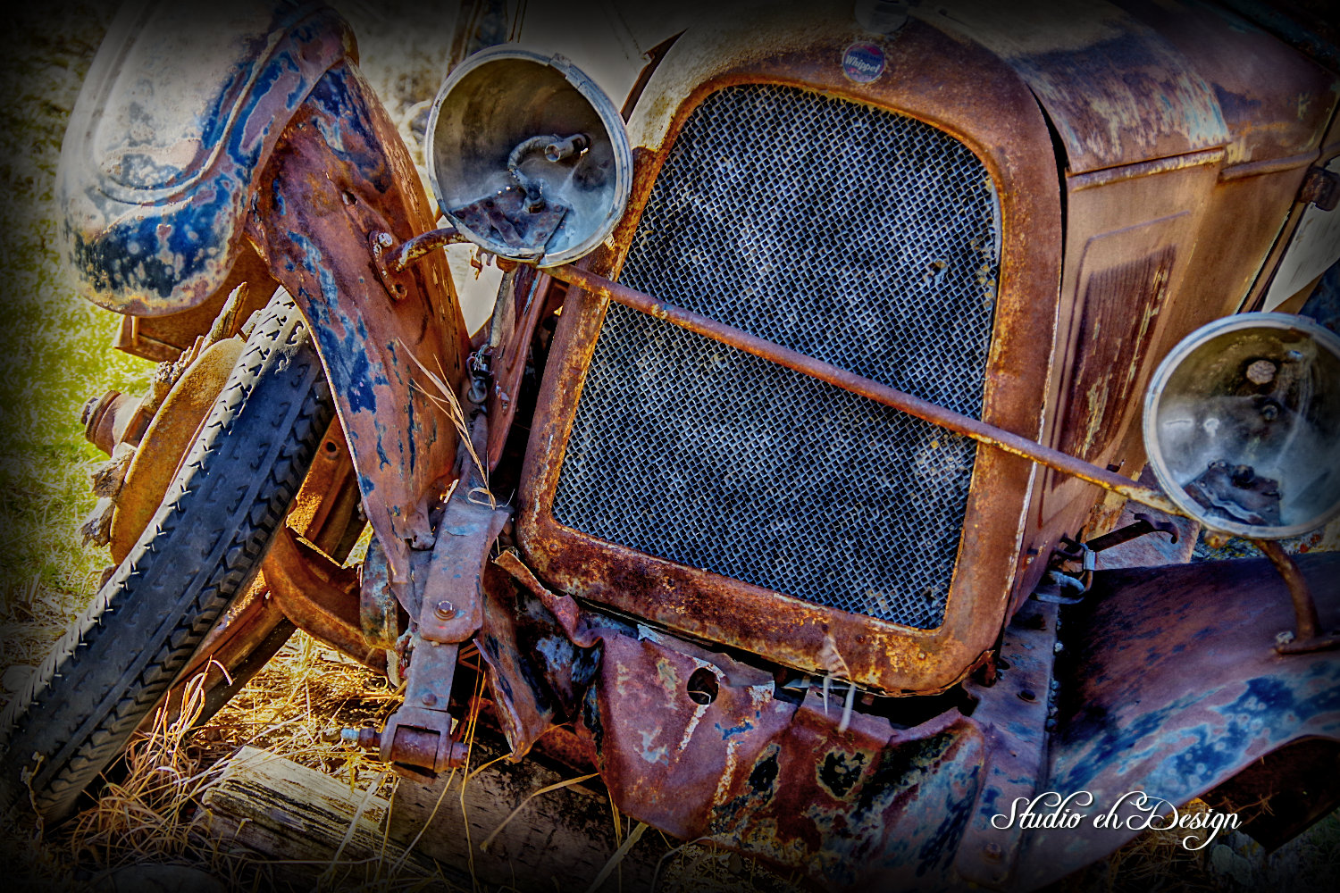 I stop at the fruit vendors, but across the road was a lone vehicle with a snowy mountain in the background. The old car was very rusted and in a sorry state. The only ID on it was a logo on the front radiator “Whippet”. I had to look that one up. It was made by Willy’s.