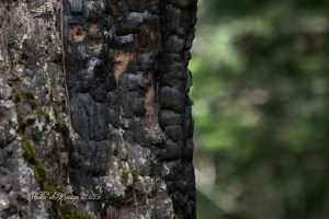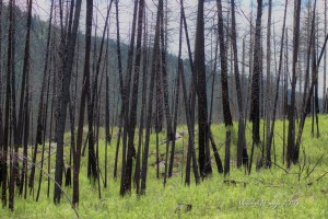 Many of the trees are still standing. The charring is evident on the bark and from a distance is has an eerie feel to it.